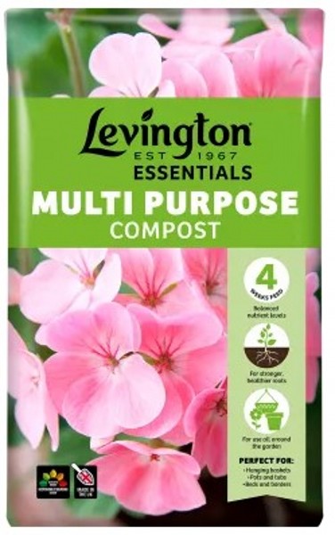 LevingtonĀ® Essentials Peat Free Multi Purpose Compost can be used in pots and containers, beds and borders and hanging baskets. Works well for all young and established plants, flowers, fruits and vegetables, and will feed them for up to 4 weeks.