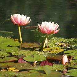 An excellent selection for medium and large ponds, this choice water lily is prized for its cactus-shaped, salmon-pink flowers. They stand elegantly above the water and flower Jul-Oct, a full month after most lilies have stopped. Best grown in full sun.