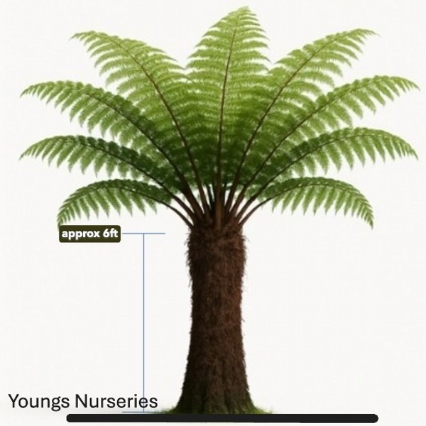 Please note. Images shown are a representation of approximate heights. You may not receive the exact plant shown. Due to seasonal changes your tree fern may not have fronds (which grow every year). However at the current time all out tree ferns have a full set of fronds.