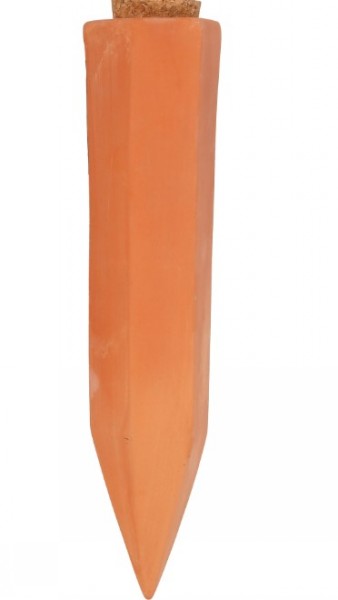 Bury t spike between plants in the vegetable garden, border or planter and fill it with water. Close it with the included cork to prevent the water from evaporating. The roots of the plants will draw water from the terracotta irrigation system. This form of irrigation can save 70% of garden water consumption.