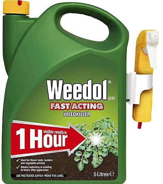 Contact weedkiller. Visible results in 1 hour. Allows replanting or seeding 24 hours after application. Good for borders and vegetable patches before planting.