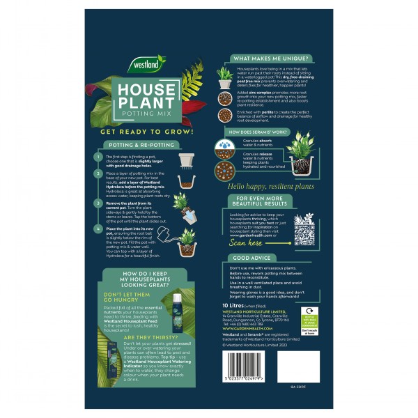 Peat free potting mix. Free draining with an open structure for healthy root growth. Loam-based to retain and slowly release nutrients.